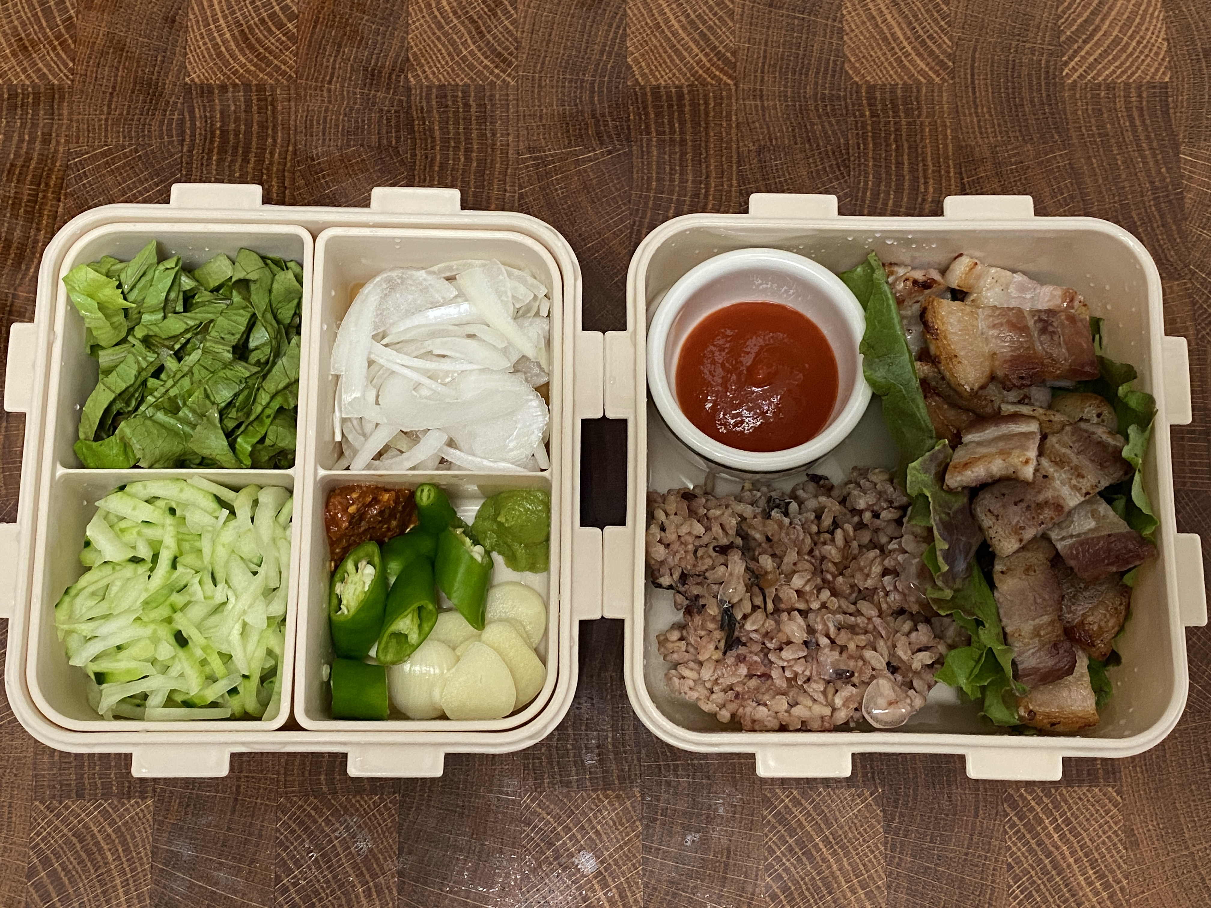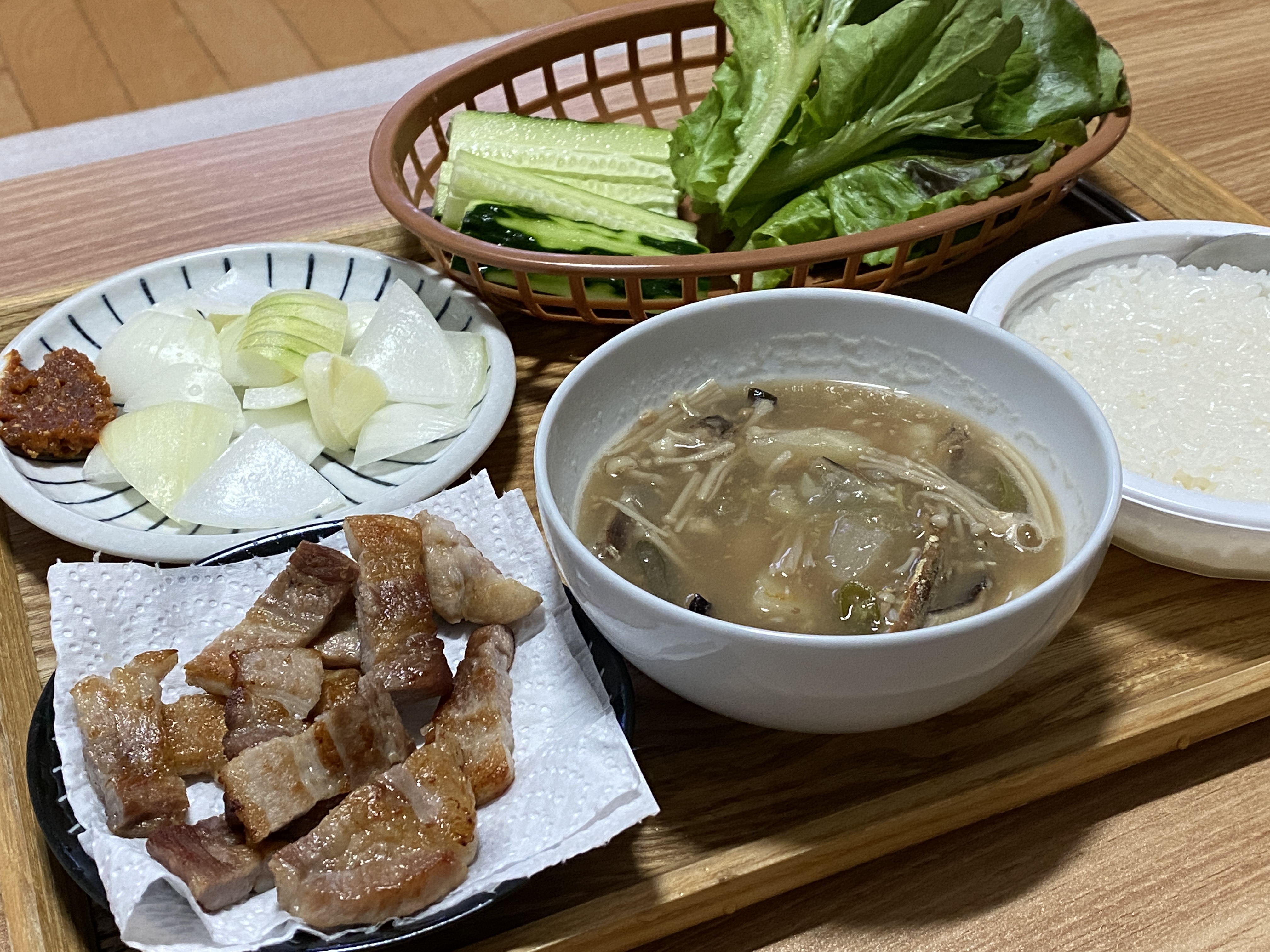 상추쌈, 오이, 양파